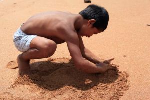 Janis in a sandy play garden…